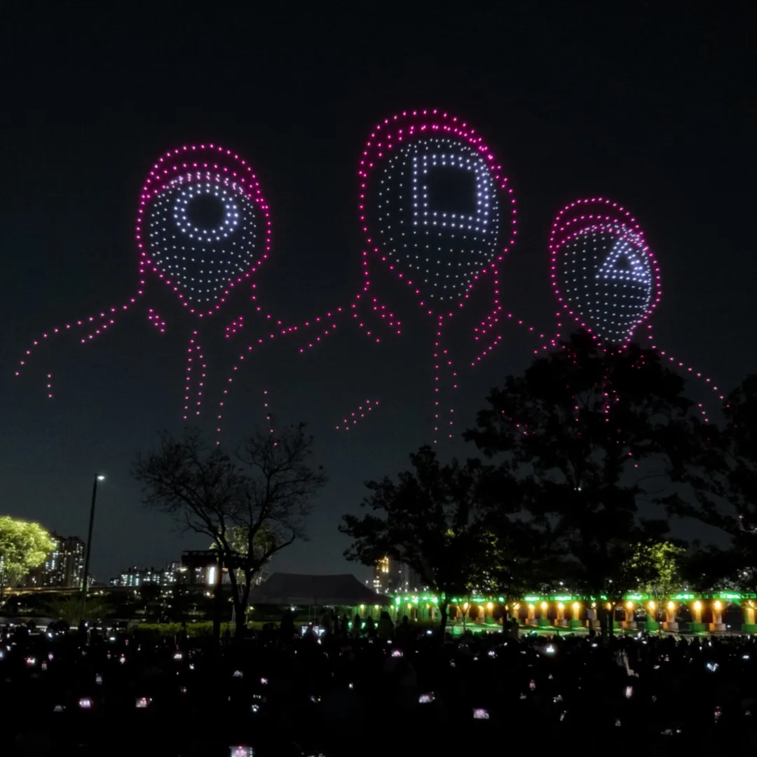 드론 쇼는 고도 100~150m 이상에서 펼쳐지므로, 아주 가까운 자리보다는 조금 뒤쪽에서 전체 뷰를 확보하는 게 좋다는 의견이 많았습니다.